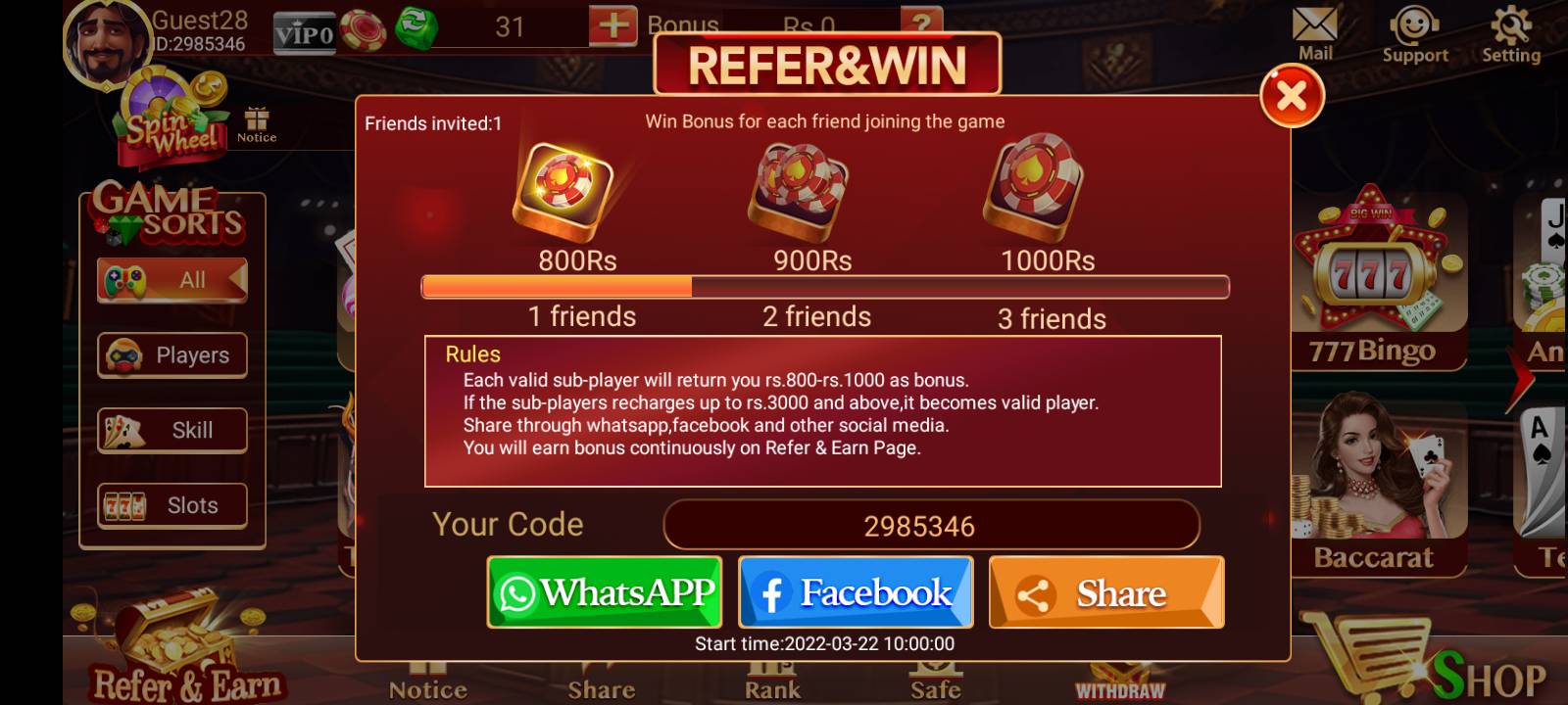 The main appeal of 3 Patti Bingo is its simple and transparent play-to-earn mechanism. Choose a game, invest a small amount, and win real cash based on your performance.